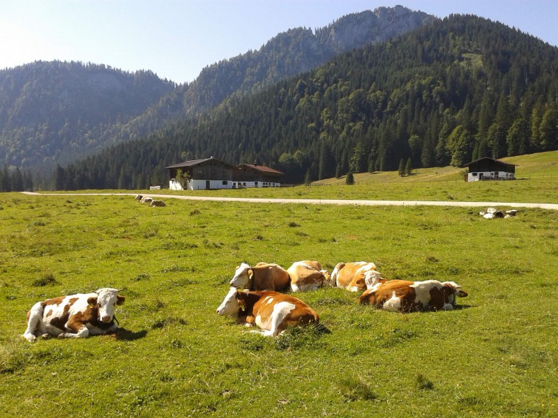Eine Wander- oder Mountainbike-Tour zur Röthelmoosalm bei Ruhpolding ist immer wieder ein wunderbares Erlebnis. Über Brand nach Urschlau, durch den Bergwald, vorbei an klaren Gebirgsbächlein und tiefen Schluchten. Oben auf der Alm könnte es malerischer nicht sein: Der majestätische Gurnwandkopf blickt auf mehrere kleine Almhäuschen herab und Kühe liegen faul in der Sonne.